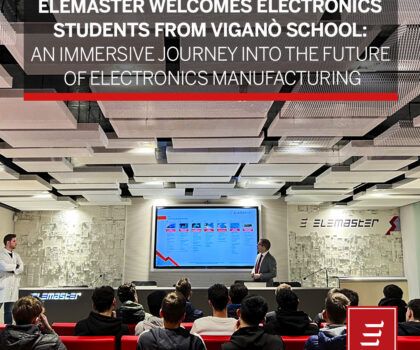 Oggi le porte del Gruppo Elemaster si sono aperte a un gruppo di giovani curiosi, pronti a scoprire il mondo della produzione elettronica. La classe del terzo anno di elettronica dell'Istituto Viganò di Merate ...