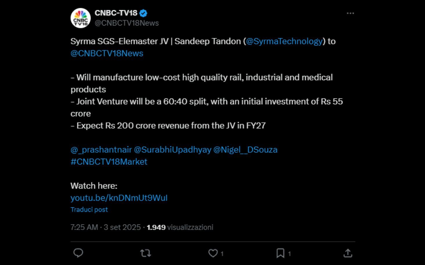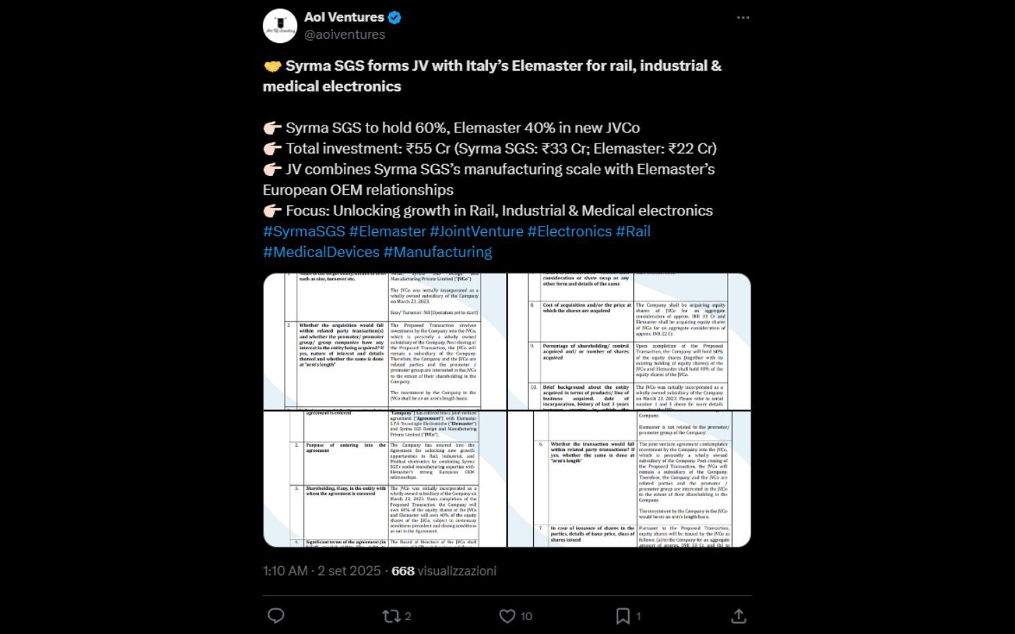 Syrma SGS and Elemaster JV
